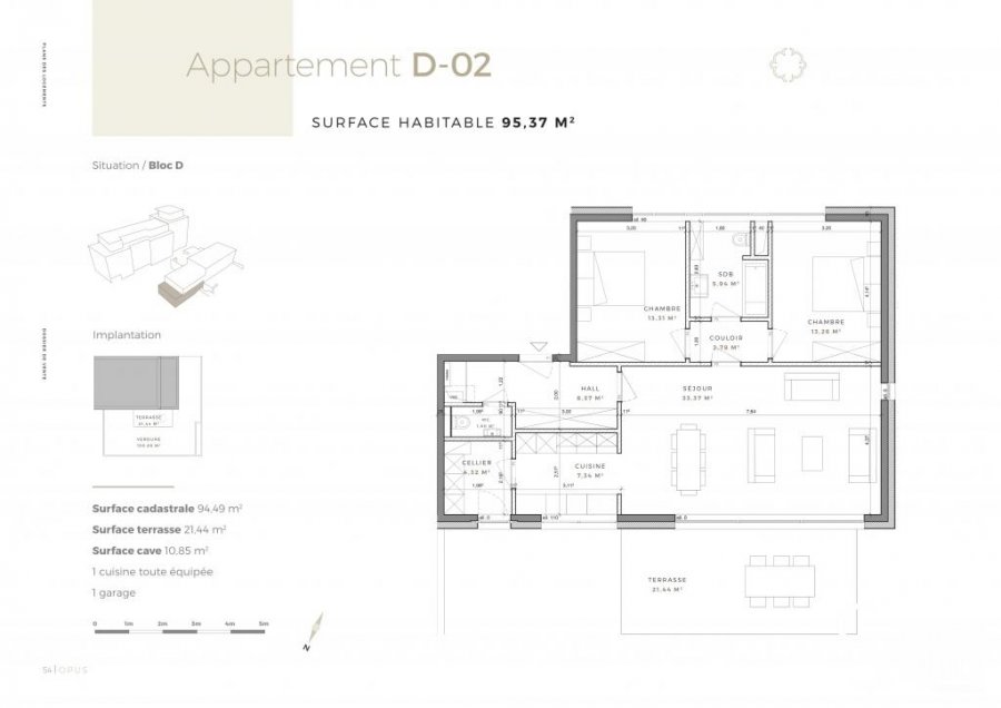 Lot D02 - Surface utile 127,66 m2 - Appartement-terrasse-jardin, de 95,37 m2 habitable, 21,44 de terrasse et de 150,66 m2 de jardin,