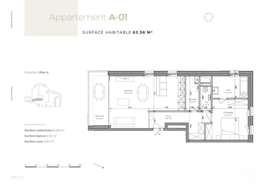 Ce bien se trouve dans cette résidenceLot A01 - Surface utile 77, 27 -Appartement-balcon, de 63,56 m2 habitable, 8,51 de balcon, au premier étage avec ascenseur dans la Résidence OPUS à Differdange.