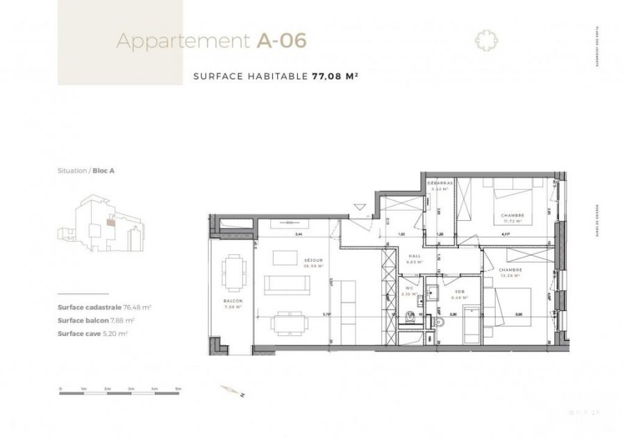 Au sous-sol une cave privatif de 5,20 m2.