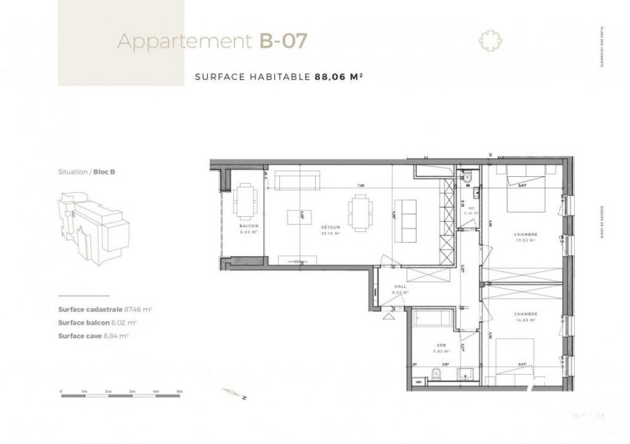 Ce bien se trouve dans cette résidenceLot B07 - Surface utile 100,92 m2- Appartement-balcon, de 88,06 m2 habitable, 6,02 de balcon, au quatrième étage avec ascenseur dans la Résidence OPUS à Differdange.