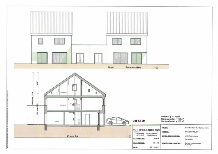 Ce bien se trouve dans ce lotissementLe lotissement bei den Kalleksiewen à Tuntange se compose de 20 terrains de 2ares98 - 6ares46 pour la construction de maisons jumelées et de maisons jumelées par le garage. Les terrains sont vendus avec un contrat de construction.